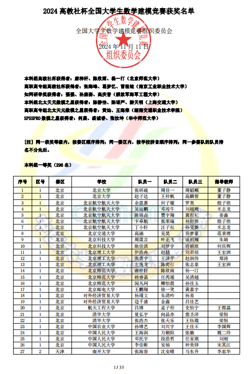 据悉,全国大学生数学建模竞赛是首批列入“高校学科竞赛排行榜”的19项竞赛之一。2024年,来自全国及国外的1788所院校/校区、65761队(本科59278队、专科6483队)、近20万人报名参赛,参赛人数创历届赛事新高。