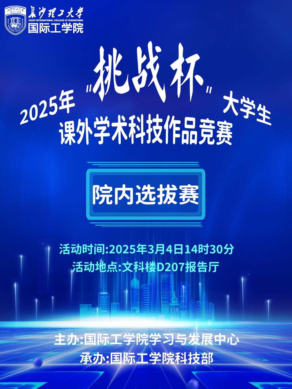 国际工学院2025年“挑战杯”大学生课外学术科技作品竞赛院内选拔赛活动预告