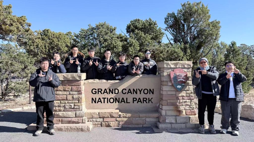 研学的意义,不仅在于课堂内的深造,更在于对世界多元维度的感知。课余时间,全体成员足迹踏遍了美国西部的自然奇观。在布莱斯峡谷(Bryce Canyon)国家公园,成片的红色岩柱在冬日阳光下熠熠生辉;在马蹄湾(Horseshoe Bend),科罗拉多河亿万年的冲刷雕琢出令人惊叹的U型河道;在羚羊谷(Antelope Canyon)幽深的缝隙中,光与影交织出如丝绸般的柔美纹理。面对大自然的鬼斧神工,成员们徒步与探索中不仅磨砺了意志,更在一张张洋溢着青春气息的大合影中,留下了团队协作的温情记忆。