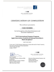 注:完成该项目的学生将获得芬兰奥卢大学的学分项目证书以及欧盟标准的学分证书。该学分受欧盟各高校认可。