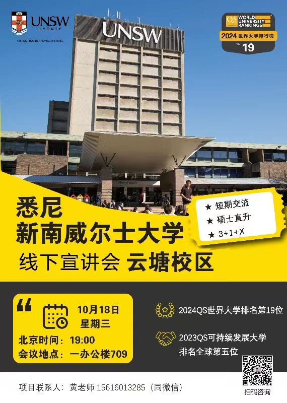 关于新南威尔士大学&MG冰球突破官网2024校际交流项目招生线下宣讲会的通知