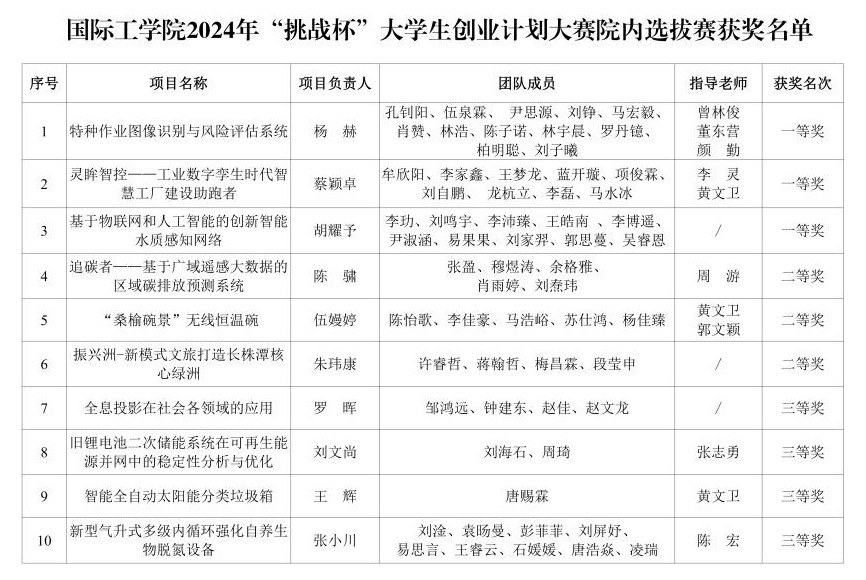 国际工学院于2024年3月12日举办“挑战杯”大学生创业计划大赛院内选拔,经过评委认真评审、讨论,现将比赛结果进行公示。公示时间为2024年3月13-15日。如对公示结果有异议,可实名向学习与发展中心反映。