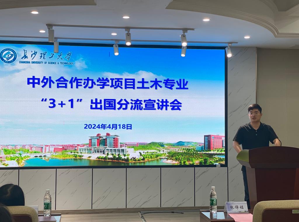 为加强学生对中外合作办学项目内涵的了解,有序做好学生出国分流工作,国际工学院于4月18日在文科楼D区207报告厅举行中外合作办学项目土木专业“3+1”出国分流宣讲会。MG冰球官网对外合作与交流处综合管理与国际项目管理科副科长张倬铭、土木项目秘书李稀受邀专题讲座,学院副院长黄月华,教务办老师,学习与发展中心老师,土木专业2021、2022级学生共同参加。