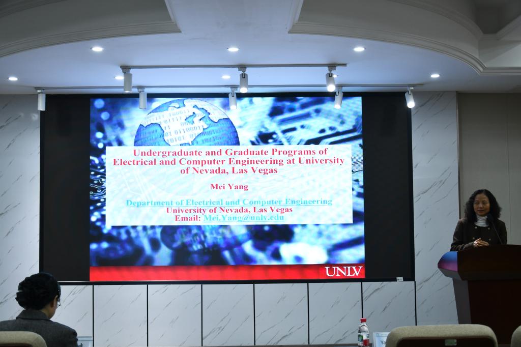 12月30日下午,美国内华达大学拉斯维加斯分校(UNLV)电气工程专业宣介会在云塘校区文科楼D区207报告厅举行。本次宣介会特邀UNLV工程学院电气工程系主任 Mei Yang教授主讲,教务办主任余志老师以及MG冰球官网中外合作办学项目电气专业50余名学生参加。