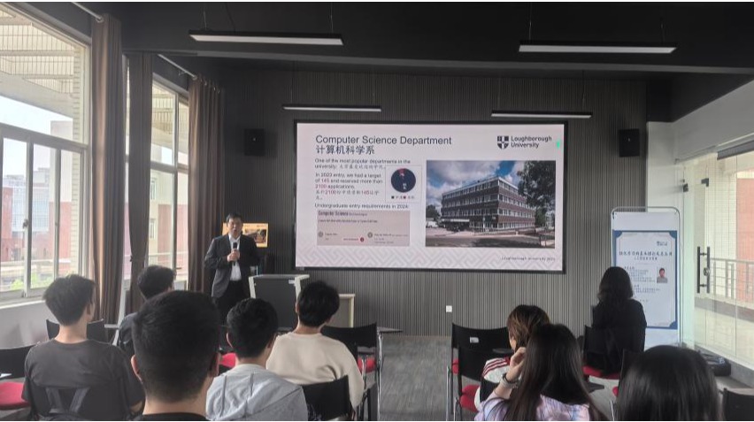为进一步深化英国拉夫堡大学与MG冰球突破官网的国际化人才培养项目合作关系,彰显对计算机“3+1”国际实验班项目学生的关怀与重视,拉夫堡大学理学院国际关系主任方辉副教授率队于4月22日下午到访MG冰球官网云塘校区,在文科楼D505开展了一场兼具学术深度与人文温度的交流活动。此次来访是基于上一次开班仪式的深度交流,通过学术讲座、深度互动等形式,展现出拉夫堡大学对项目学生培养的高度重视。