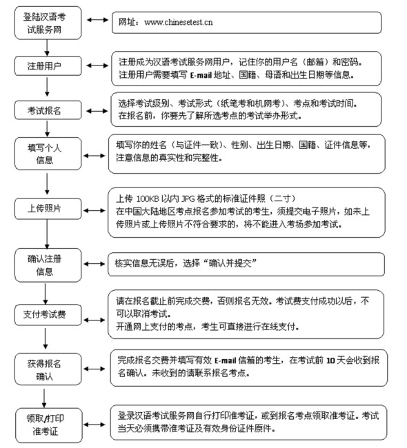 考生登录汉语考试服务网,按照网站指导上传电子照片。