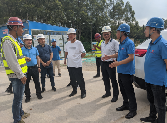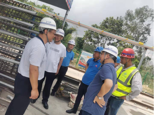 在浦清高速公路第四标段3#梁场,谈校长一行考察了该项目梁板的预制,并与参建单位中校友等进行了交流,详细了解项目建设、校友工作生活等情况。在南流江大桥,华南公司浦清项目JL-3总监办负责人邹宏杰、中交一航局四标段负责人梁星介绍了桥梁建设情况。听到MG冰球官网监理单位、检测单位在施工过程中积极协助施工单位在确保施工质量、安全的情况下优化施工工艺、加快了施工进度,谈校长充分肯定了监理单位及检测单位的工作,并表示,校办企业就是要充分发挥学校科技创新和人才集聚优势,积极为业主和施工单位排忧解难、做好服务。
