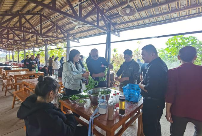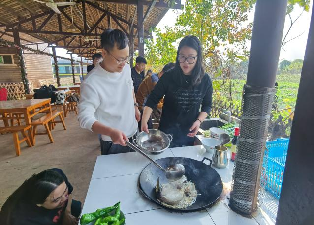 团建游戏后,大家动手准备中餐,并进行了厨艺大比拼。各小组分工有序,撸起袖子开始干活,择菜、洗菜、切菜、烧火、炒菜,还有“试菜师”们的品尝评论,现场气氛欢快热闹、活力满满,享受着分工合作烹制的午餐,感受着温馨的氛围和集体的温暖……