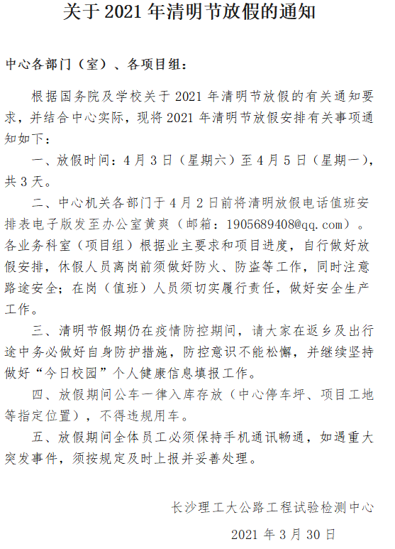 关于2021年清明节放假的通知