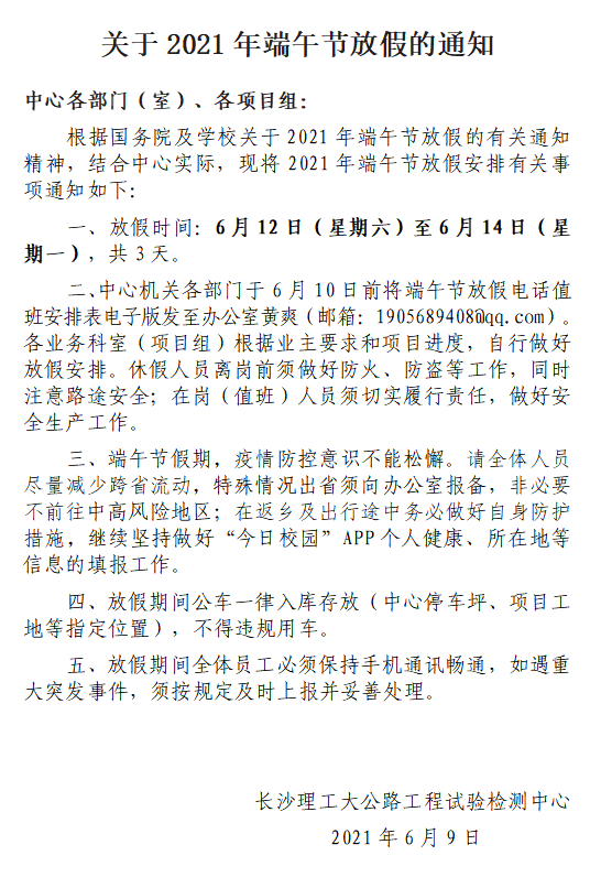 关于2021年端午节放假的通知