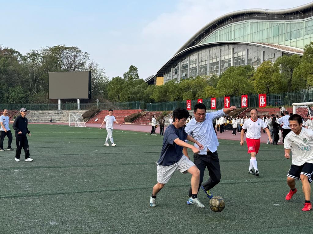 比赛在热烈的气氛中拉开战幕,双方迅速进入状态,展开激烈较量。教师队斗志昂扬、配合默契,教师队进入状态较快,凭借娴熟的脚下技术和默契的传接配合,屡屡组织起有威胁的进攻。学生队则展现迅速的跑动和积极的拼抢意识,脚下盘带、边路突破等场面接连上演,比赛前半段,学生队火力全开,展现出青春的活力与冲劲。
