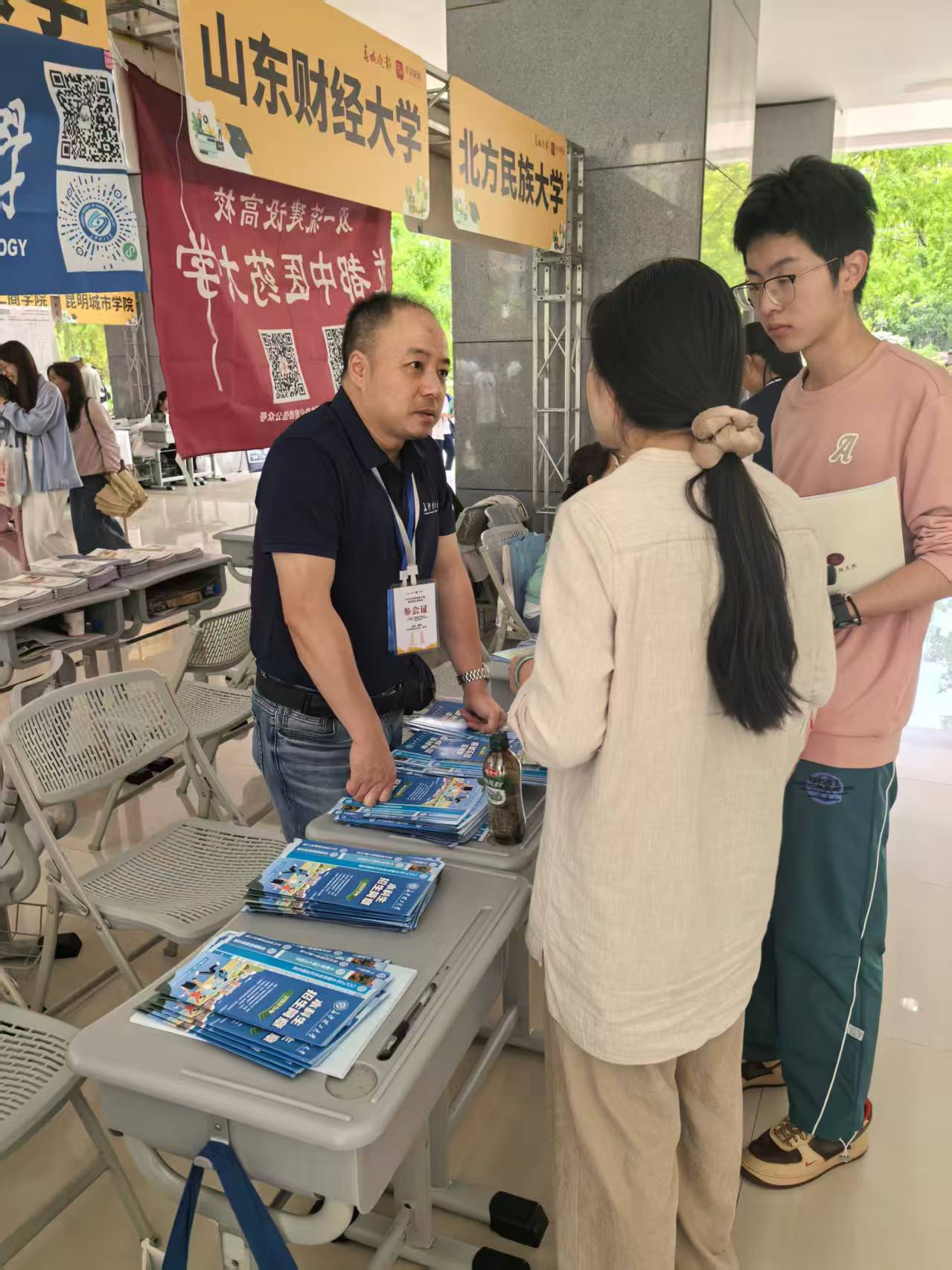 6月28日校园开放日当天,学院精心布置咨询展区,通过图文展板、招生简章等形式立体呈现办学特色。刘斌、许珊两位老师为来访家长提供"一对一"咨询服务,详尽讲解专业特色,结合考生实际情况给予报考建议,同时分享学生获奖成果和校园文化生活,帮助家长全面了解学院人才培养体系。