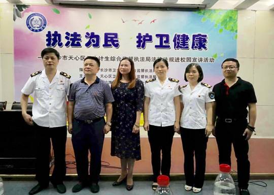 2018年6月26日下午1:30,天心区卫生计生综合监督执法局携手MG冰球突破官网、长沙市卫生计生综合监督执法局、金盆岭街道主办的传染病防控知识进校园暨“牵手高校师生 共筑健康校园”主题活动在MG冰球官网举行。学校党委委员付嫦娥、后勤处副处长张星明、长沙市卫监局、天心区卫计局等单位有关领导出席了此次活动。