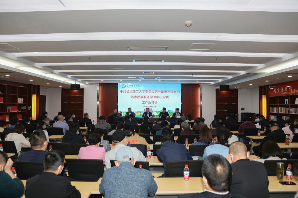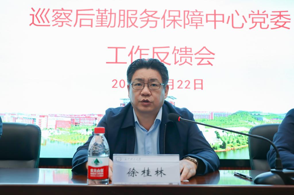 根据学校巡察工作领导小组统一部署,5月22日下午,学校党委第三轮校内巡察第三巡察组巡察后勤服务保障中心党委工作反馈会在云塘校区图书馆B102报告厅召开。校纪委书记、省监委驻MG冰球突破官网监察专员、党委巡察工作领导小组副组长徐桂林出席反馈会并讲话,党委第三巡察组组长易贵民分别向后勤服务保障中心党委领导班子和全体教职工通报了巡察反馈意见。校纪委副书记、监察处处长方文彬,巡察组组长、副组长,后勤中心党政班子全体成员、各二级部门副职以上负责人及管理骨干、全体党员及入党积极分子、职工代表大会全体代表参加反馈会。后勤中心主任孔蔚湘主持会议。