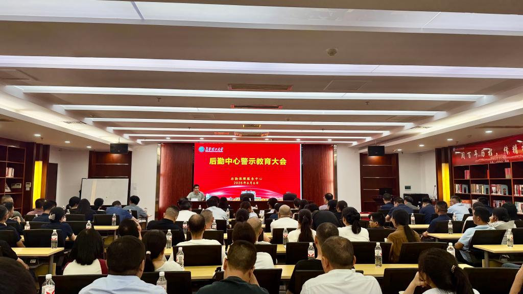 6月6日下午,后勤中心在图书馆B102会议室召开警示教育大会。后勤中心副主任周娇林主持会议。中心全体领导班子成员、各部门班组长以上管理人员、托管食堂项目经理、施工入围单位负责人、原材料入围单位负责人代表共111人参加会议。