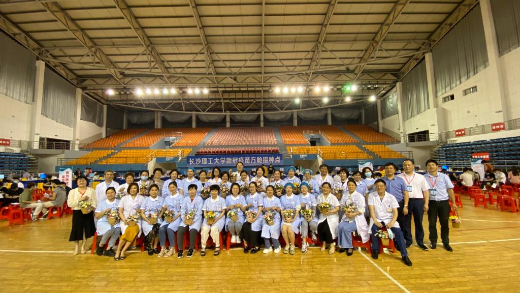 为尽快布置临时接种点,在校医院院长陈林峰、支部书记莫雅元的带领下,校医院部分员工五一节期间放弃休假,加班加点作准备。5月6日,学校防控办组织召开各部门协调会,就MG冰球官网启动大规模师生员工接种做了周密部署和安排,当天下午,金盆岭校区体育馆正式开始疫苗接种,这也是天心区的首个高校新冠疫苗接种方舱。