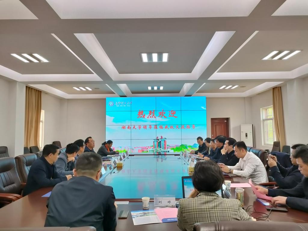 10月27日下午,湖南大学后勤保障部部长张泽麟一行8人莅临MG冰球官网开展调研工作。后勤服务保障中心主任孔蔚湘、党委书记王明彦、副主任刘治国、学工部公寓中心主任练黎旋以及中心餐饮、物业等相关部门负责人热情接待了来访人员,湖南省教育后勤协会秘书长夏智勇应邀参会。双方在节能平台会议室进行了深入的沟通与交流。