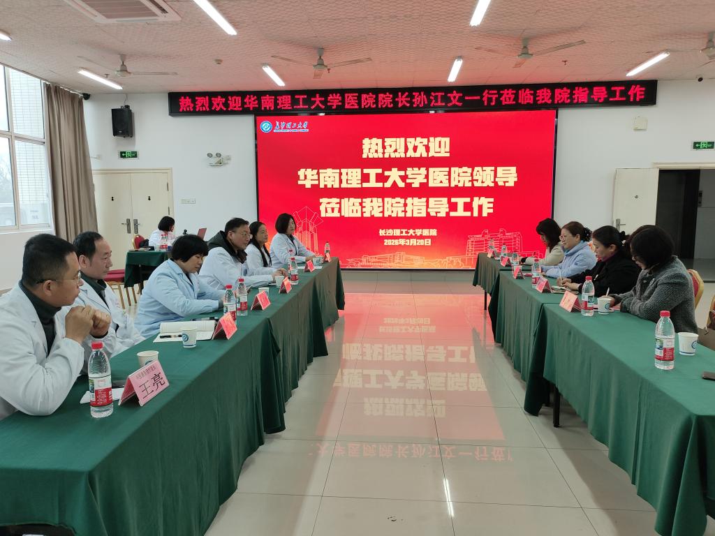 3月20日上午,华南理工大学医院院长孙江文一行来MG冰球官网医院(卫健办)调研交流。后勤中心副书记、校医院院长陈林峰,副院长王楠及各科室负责人参加座谈。