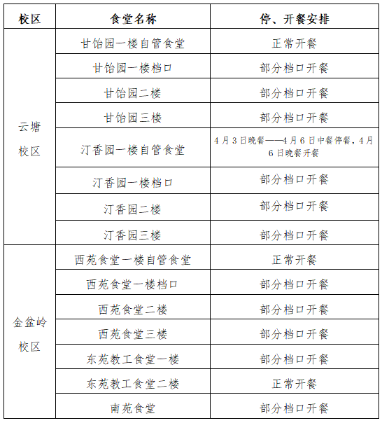 根据学校清明节放假安排,现将假期各食堂营业时间通知如下: