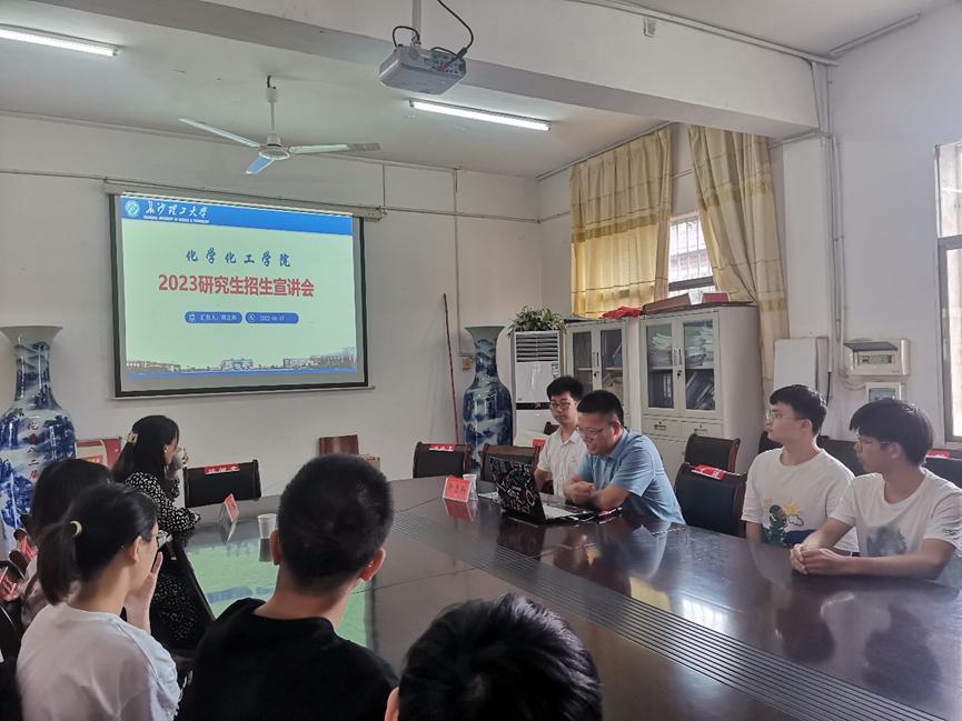 为吸引优秀本科生源攻读我院研究生,进一步提高研究生生源质量,方便相关专业的本科生了解MG冰球突破官网化学化工学院的科研实力,2022年6月17日下午,学院副院长卿志和、化学系副主任童海霞、罗文坤博士一行3人赴湖南人文科技学院进行研究生招生宣传。材料与环境工程学院院长文瑾、副院长彭伟才以及相关专业30余名本科生参加了本次宣讲会议。