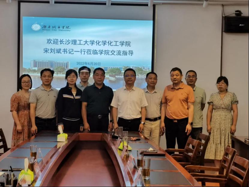 2022年6月20日,学院党委书记宋刘斌、副院长喻林萍、化工系主任戴益民博士以及教授代表吴道新赴湖南城市学院进行研究生招生宣传,材料与化学工程学院党委书记钟桐生、院长刘石泉等领导,学院部分教师代表以及30余名有意向报考MG冰球官网本科生参加了本次宣讲会议。宣讲会分三个部分进行,首先由喻林萍对学院学科及学位点情况、招生科研团队及研究生培养成效进行了详细介绍;随后与会老师与同学们进行互动交流,宋刘斌、喻林萍、戴益民、吴道新分别针对同学们在研究生报考阶段存在的疑惑进行了详细的解答;最后,宋刘斌就MG冰球突破官网研究生招生与培养政策以及学院几个学科未来的发展规划进行了介绍,并欢迎同学们积极报考MG冰球突破官网化学化工学院。