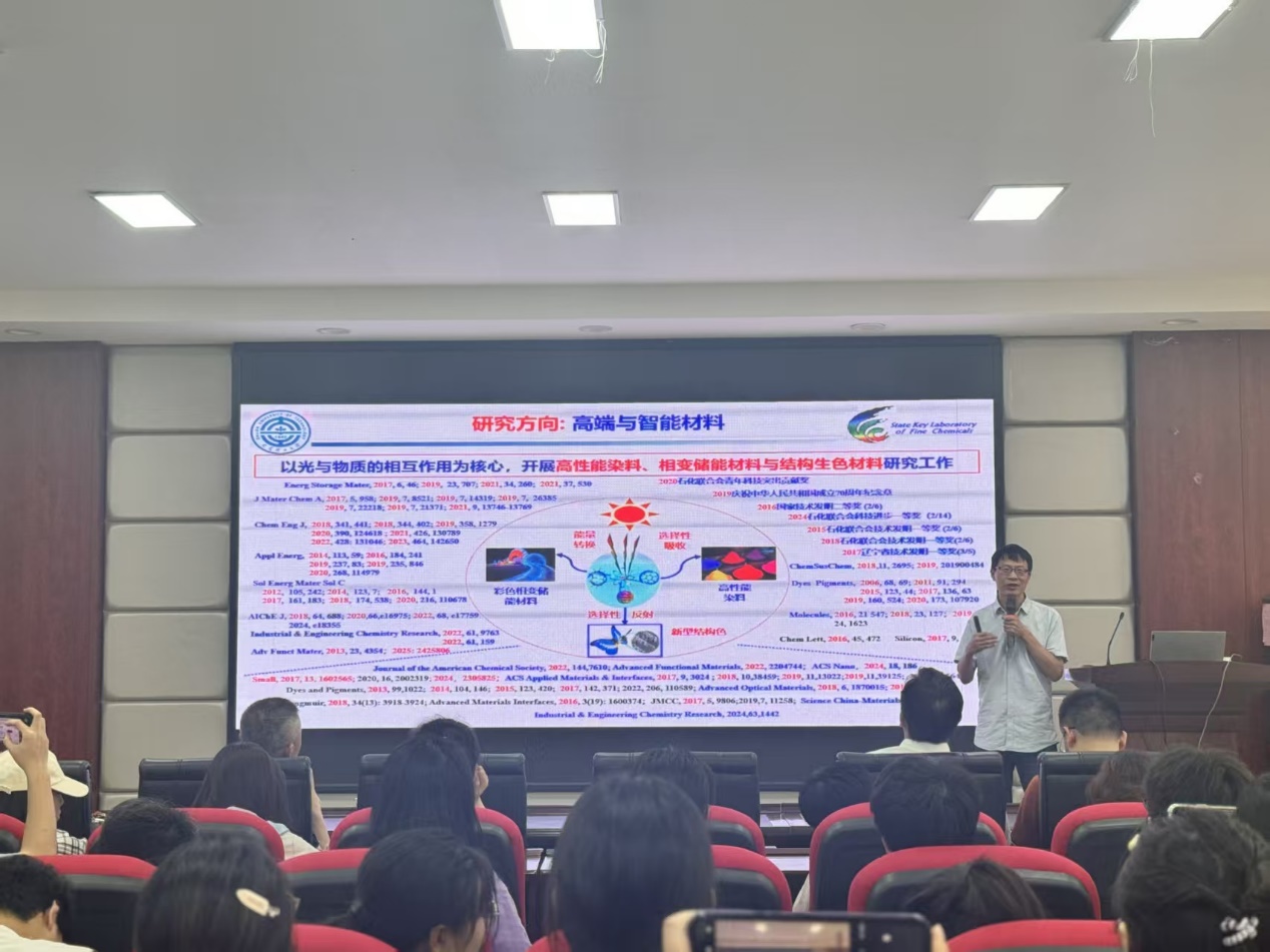 2025年5月21日下午,应MG冰球突破官网化学与医药工程学院和电力与交通材料保护湖南省重点实验室邀请,大连理工大学精细化工全国重点实验室唐炳涛教授莅临MG冰球官网开展学术交流,在工三A320报告厅作了题为"能量转换相变材料的基础研究与应用"的学术报告。报告由学院院长张跃飞教授主持,学院师生热忱参与,报告会现场座无虚席。