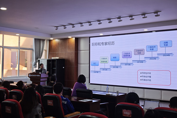 此外,钱高工真诚地分享了自己过去30年四个阶段的职业生涯经历与感受,她谦虚敬业的精神与强大的职业使命感深深地鼓舞了在场的每位师生,她也指出化学化工类专业是新型电力系统建设创新与发展的关键支撑力量之一——从电力设备运维中的化学监督,到新型环保绝缘油研发、先进电工材料创新,再到节能减排技术突破,都离不开化学技术的深度赋能。最后,钱高工鼓励化学学子学会将化学理论学习结合工程实践练习,积极参与创新思维训练提升综合素养,为未来解决复杂工程问题打下坚实的化学理论基础。