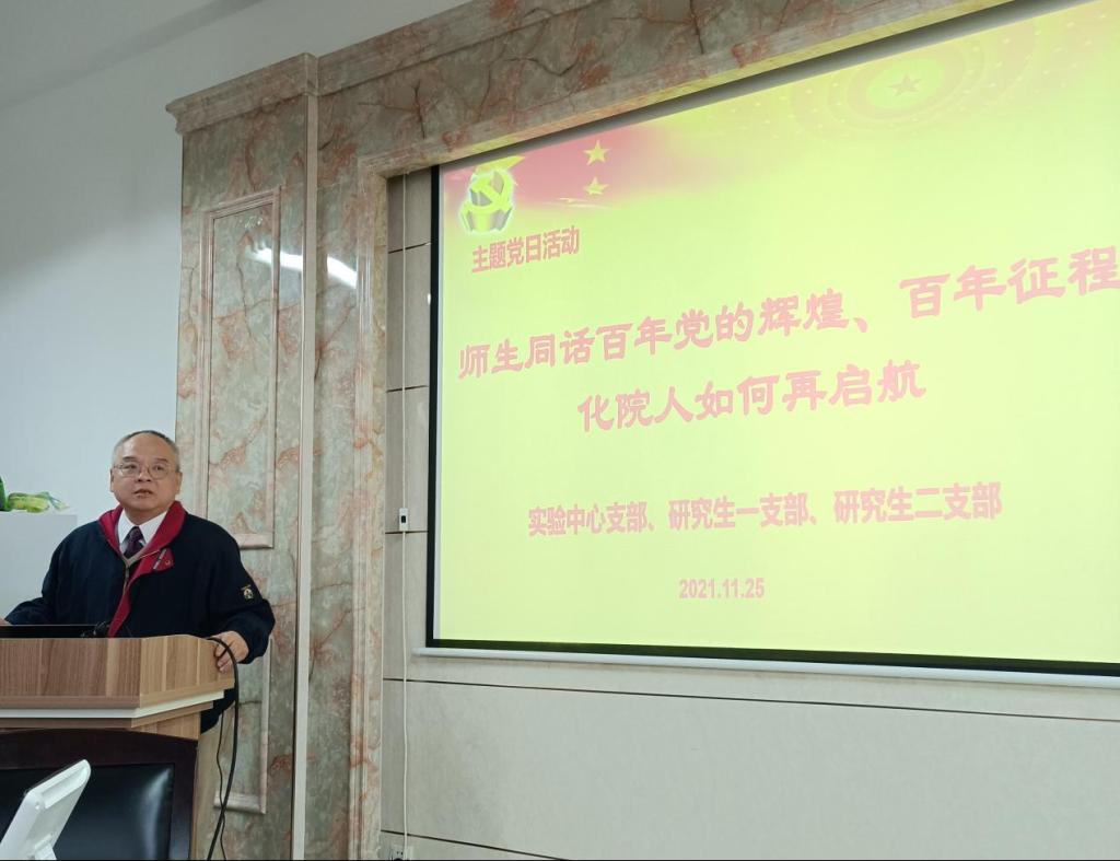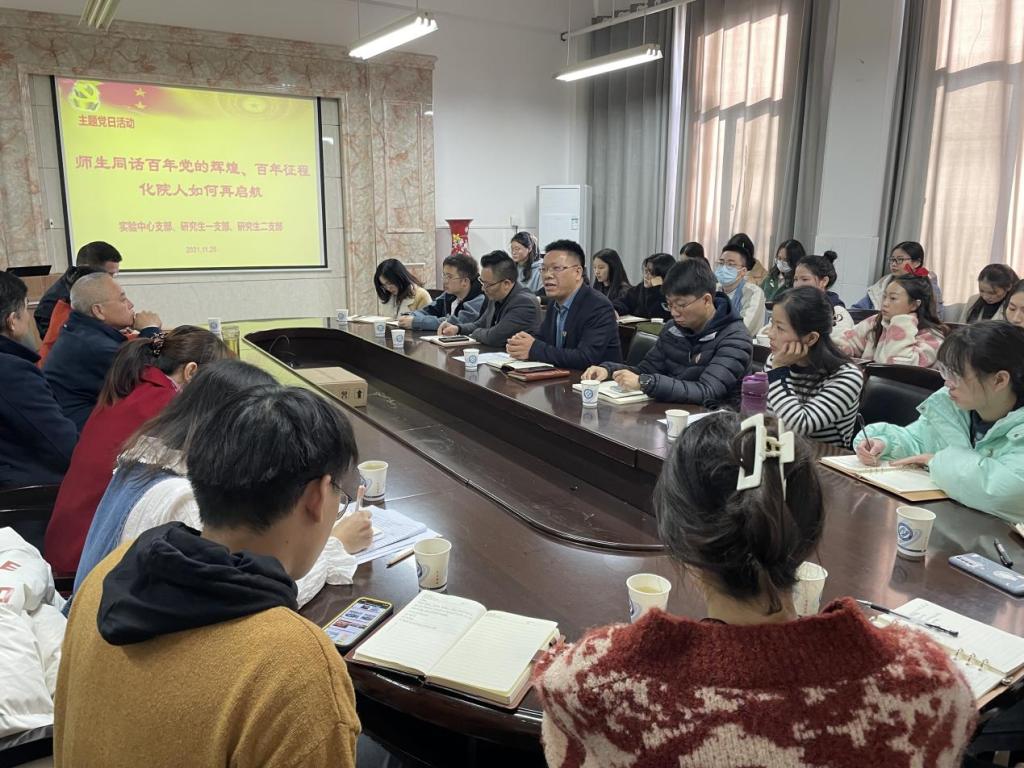 11月25日上午,MG冰球突破官网化学化工学院实验中心党支部和研究生一、二支部在工三B318联合开展“师生同话百年辉煌,百年征程,化院人如何再启航”主题党日活动。