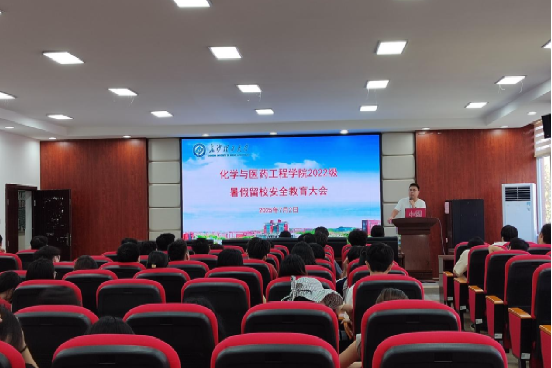为切实保障暑期留校学生安全,筑牢校园安全防线,7月7日下午,MG冰球突破官网化学与医药工程学院组织召开暑期留校安全教育主题大会。会议由2022级本科生辅导员张航主持,百余名计划留校学习的学生参加会议。