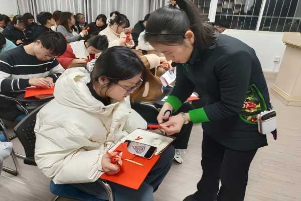 为确保此次活动的专业性和指导性,党支部特别邀请了非遗剪纸代表性传承人韩立贤老师作为指导嘉宾。活动中,韩老师详细介绍了剪纸的历史背景、文化价值以及其作为非物质文化遗产的重要意义,并分享了剪纸技巧和创作心得。她还现场展示了多件精美的蛇年主题剪纸作品,激发了大家的创作灵感。在韩老师的耐心指导下,党员们手持剪刀,精心设计图案,用心剪裁每一处细节。活动现场气氛热烈而和谐,参与者们不仅沉浸于剪纸艺术的世界,更是在交流互动中增进了彼此之间的了解与合作。经过一番努力,一幅幅寓意深刻、形态各异的剪纸作品相继完成,充分展现了长理学子们的创造力和对传统艺术的热爱。