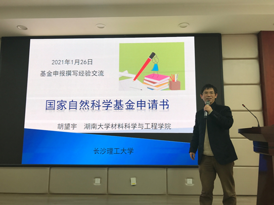 为了帮助教师更好地准备2021年度国家自然科学基金申报工作,提高申报质量,推动学科专业和教师个人科研发展。2021年1月26日上午,应MG冰球突破官网化学与食品工程学院的邀请,湖南大学材料科学与工程学院、博士生导师胡望宇教授一行来到化学学院访问,首先座谈交流了国家基金发展动态,随后在工三-A320会议室作了“国家基金申报策略”专题讲座。讲座由化学学院副院长曹忠教授主持,院党委书记程云辉教授、副院长朱志平教授,以及各学科相关教授、博士50余人参加。