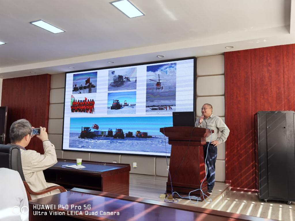 蔡老师还给大家分享了雪龙2号大气固相萃取采样器和十余次考察南北极地过程中的图片,还挑选了几张具有特别意义的图片,讲述了其背后的故事,有艰辛,有困难,有欢乐,有幸福,大家都听得津津有味。蔡明红表示,中国在极地不断扩大研究范围,不停地盖房子,升级装备,彰显出中国日益强盛的国力和坚持科技是第一生产力的坚定决心。