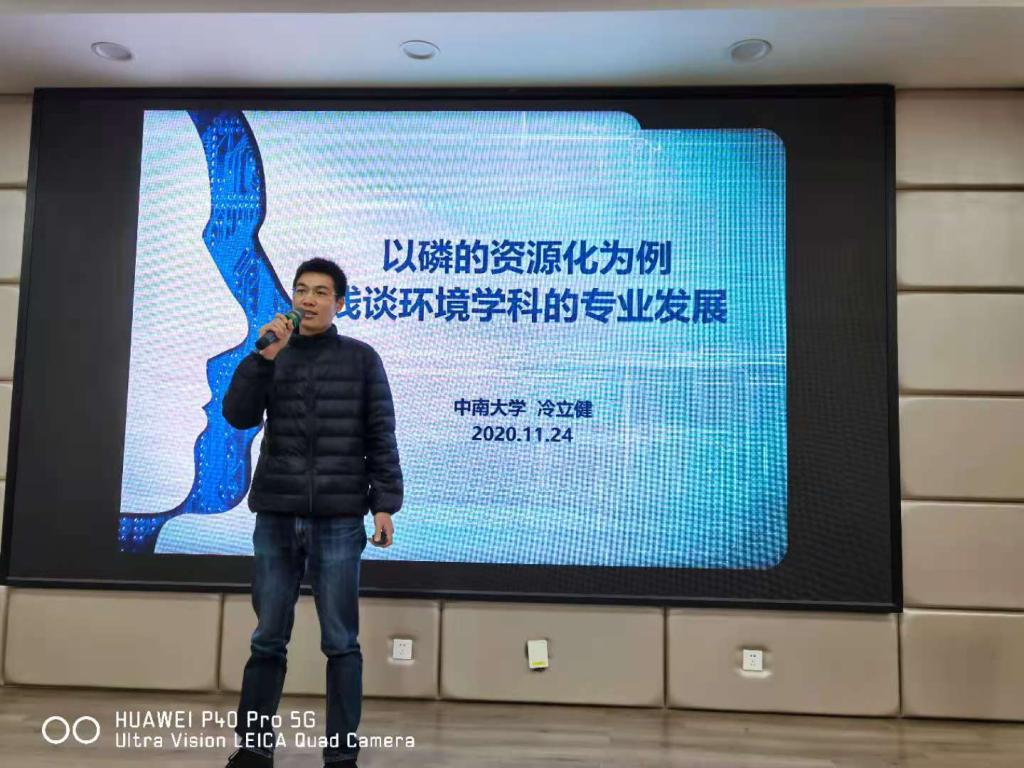 11月24日上午,应MG冰球突破官网化学与食品工程学院环境工程教研室邀请,中南大学能源科学与工程学院特聘教授冷立键博士在云塘校区工三A320作了题为“以磷的资源化为例浅谈环境学科的专业发展”的专题学术报告,本次讲座由化学学院副院长曹忠教授主持,化学学院环境、化学、化工及相关专业老师、研究生和本科生共百余人参加。