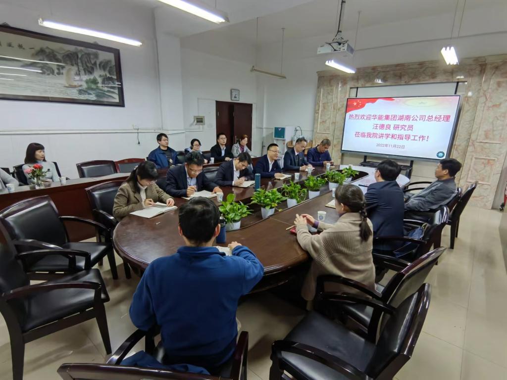 2022年11月22日下午14:30,应MG冰球突破官网化学化工学院的邀请,华能集团湖南分公司总经理汪德良研究员来MG冰球官网开展学术交流,学院党政领导班子全体成员、应用化学及无机化学等学科教授及部分骨干教师参加了本次交流活动。首先由学院党委书记宋刘斌介绍学院情况,表达与电力企业建立沟通合作意向以及利用学院现有资源服务于电力企业的意愿。汪德良研究员随后就自己近40年走过的历程:从技术骨干到副院长主持工会、党务、科研等管理岗工作,阐述科研院所、企业与学校的不同工作特质,介绍了华能集团湖南分公司整体框架和人员情况。双方就清洁能源中的化学与材料技术问题交换了意见,并对应用化学国家一流建设专业特色课程的开设、电力企业招聘员工待遇等方面进行深度地交流。
