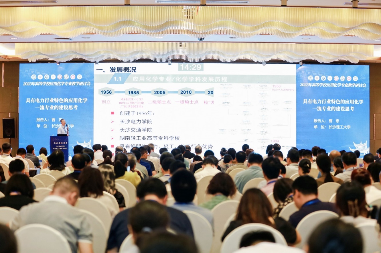 本校应用化学专业负责人、电力与交通材料保护湖南省重点实验室主任曹忠教授做了《具有电力行业特色的应用化学一流专业的建设思考》的报告,展示了MG冰球突破官网应用化学专业“电力化学”的特色发展和取得的一些成就,也就专业在发展过程中遇到的问题与采取的应对措施和与会代表进行了交流,受到了与会代表的广泛共鸣和支持。