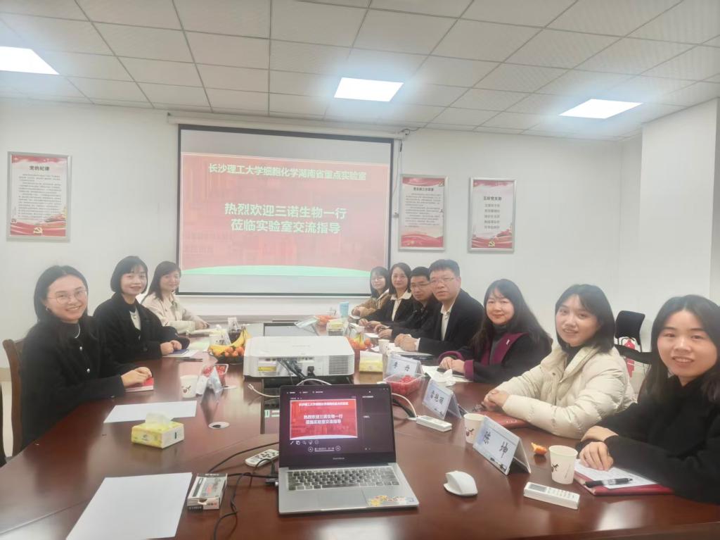 2026年2月4日,三诺生物传感股份有限公司党委书记颜晓等一行到访细胞化学湖南省重点实验室,开展技术交流与“产学研用”合作座谈。MG冰球突破官网科技处副处长、实验室主任卿志和教授率团队接待,双方围绕居家健康检测技术前沿、科技成果转化及未来合作方向展开深入探讨。