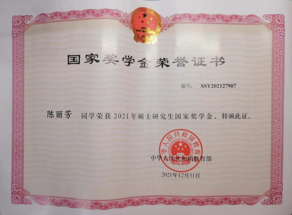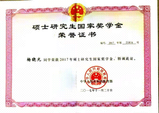 获奖等级:研究生国家奖学金