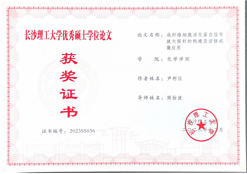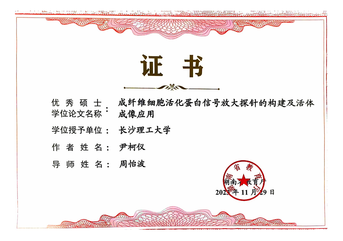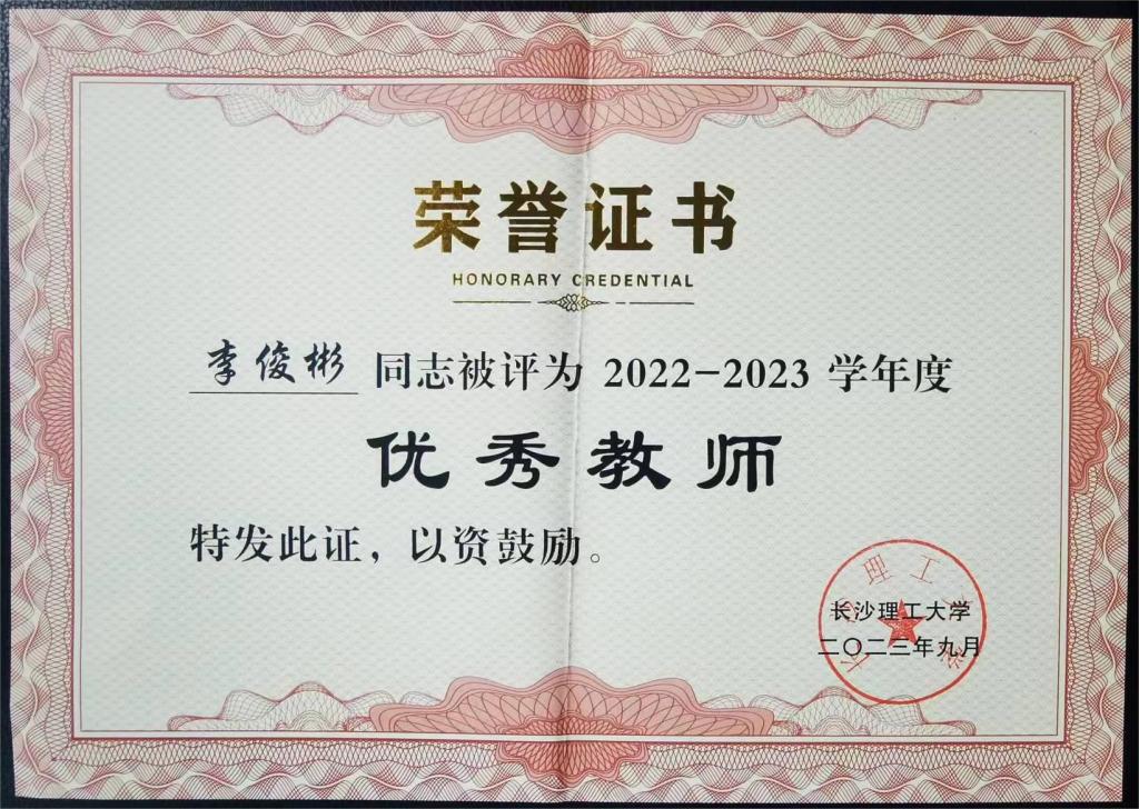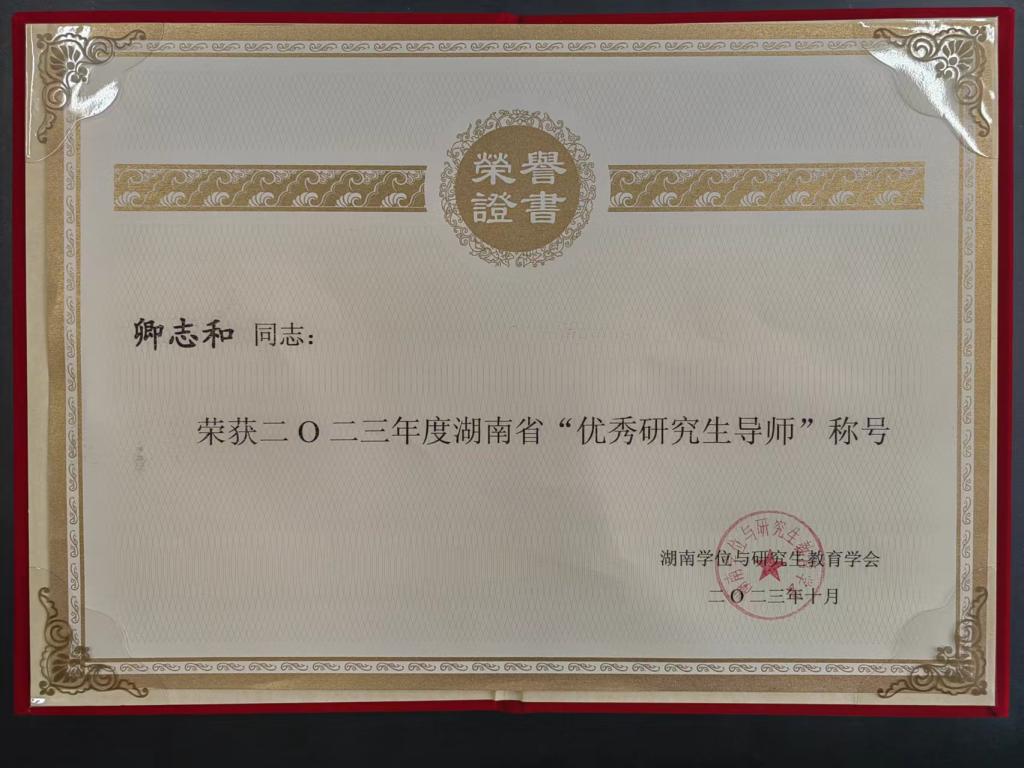 获奖等级:2023年度湖南省“优秀研究生导师”
