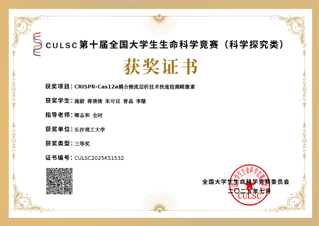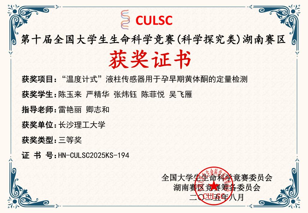 获奖等级:第八届全国大学生生命科学竞赛科学探究类湖南赛区 三等奖