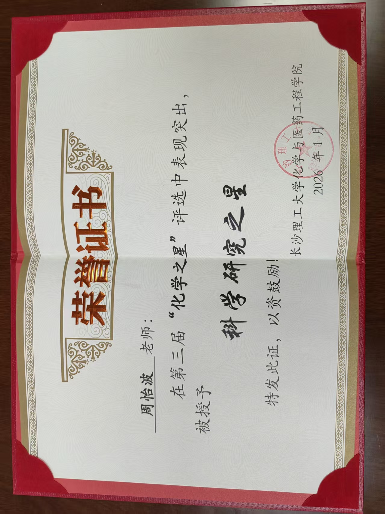获奖等级:科学研究之星