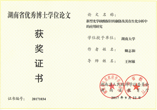 颁奖部门:湖南省人民政府学位办/湖南省教育厅