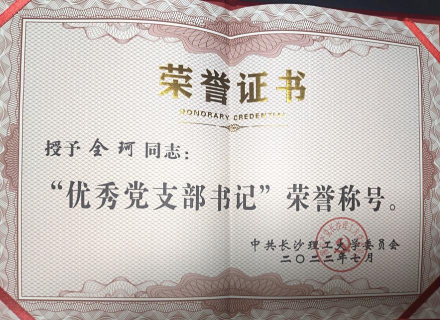 获奖等级:“优秀党支部书记”荣誉称号