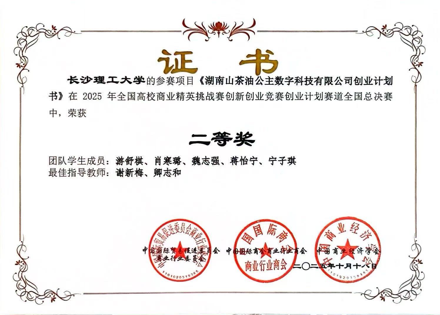 获奖等级:全国高校商业精英挑战赛创新创业竞赛创业计划赛道 二等奖