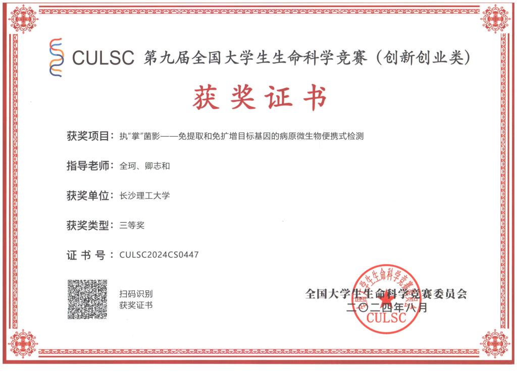 获奖等级:第九届全国大学生生命科学竞赛(创新创业类)三等奖
