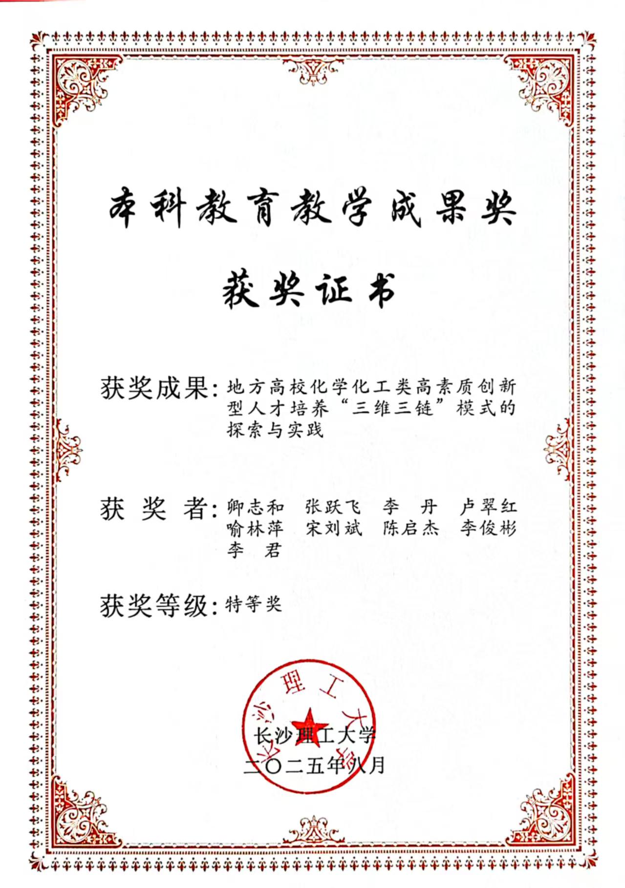 颁奖部门:湖南省化学化工学会