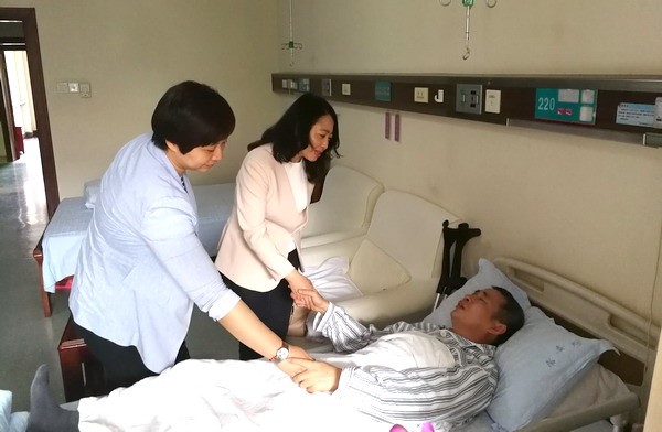 Before the meeting, Mrs. Yu went to the hospital, presented with delegates from Hunan Provincial Department of Education and expressed tender solicitude towards Mr. Huang, the Chinese teacher & accident victim, with best wishes from Hanban and the Ministry of Education.