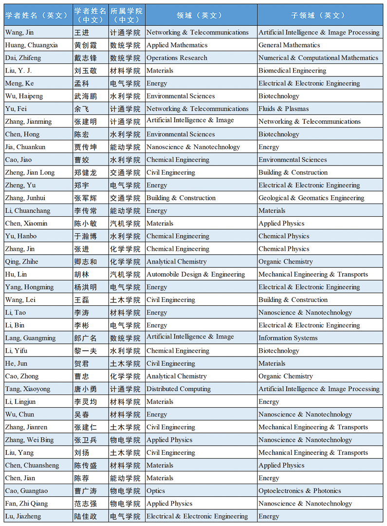 Recently, Stanford University and Elsevier Data Repository released the 2023 World's Top 2% Scientists List, which is categorized into "Lifelong Scientific Influence Ranking" (204,643 collected worldwide, 9 from China), focusing on the influence of scientists entire academic career until now, and "Annual Scientific Influence Ranking" which centers on the academic achievements of the current year (210,198 scientists listed globally and 23,484 from China). Listed among the top 2% of the world's leading scientists are seven scholars from CSUST in light of the "Lifelong Scientific Influence Ranking”, including Zheng Jianlong, Huang Chuangxia, Yang Hongming, Hu Lin, Wang Jin, Meng Ke, Yu Fei. Also among the top 2% world's leading scientists list are 39 scholars from CSUST in light of the "Annual Scientific Influence Ranking"