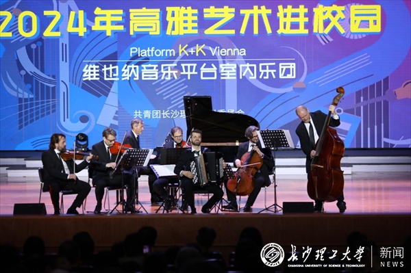 4月23日,维也纳音乐平台室内乐团(Platform K+K Vienna)专场音乐会在MG冰球官网云塘校区大会堂举行,来自“音乐之都”维也纳的演奏家用优美动听的旋律为师生带来了一场浪漫独特的音乐体验。校党委书记付宏渊与学校一千六百余名师生共同欣赏此次音乐会。