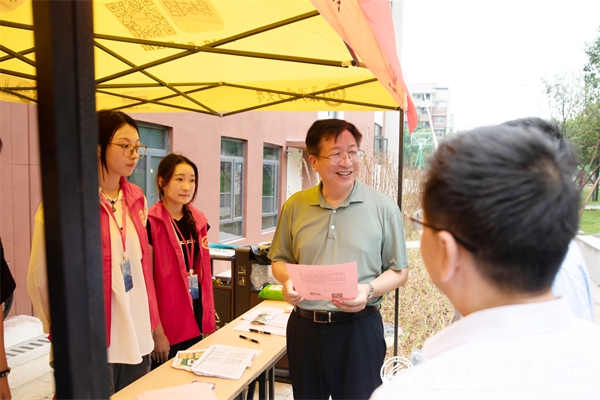 9月15日,校党委书记付宏渊,校党委委员、副校长钱国平,校党委副书记方琼带领相关职能部门负责人深入金盆岭、云塘两校区检查指导2024级新生报到工作,看望慰问迎新工作人员和志愿者,同时与2024级新生及家长亲切交流。