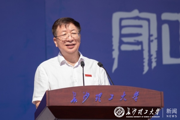 典礼上,付宏渊对加入长理的2025级新同学们表示热烈欢迎,并以《信仰为炬照前路 青春作笔写华章》为题致辞。“理想与担当从何而来?唯有信仰。”他指出,今年是中国人民抗日战争暨世界反法西斯战争胜利80周年,先辈以信仰赢得胜利,为我们创造了今日的盛世中国,同学们要继承先辈遗志,以信仰为炬,以担当为刃,奋力书写新时代青年的强国答卷。